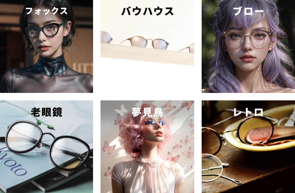 さらに、商品ページには各商品の詳細な説明やサイズ情報が記載されているため、自分の顔の形や用途に合ったフレームを比較検討しやすくなっています。
